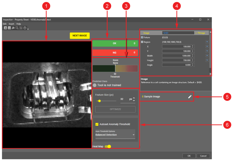 Konfiguracja funkcji ViDiELAnomaly w arkuszu kalkulacyjnym In-Sight pozwala na bardzo dokładne nastrojenie systemu: