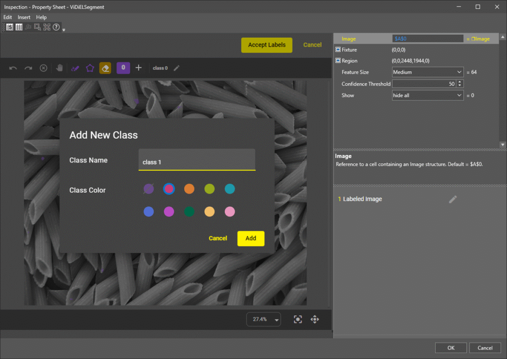 Definiowanie Klas (Classes): Możesz stworzyć klasę dla obiektu, który chcesz znaleźć (np. „Produkt”) oraz klasę dla tła („Background”). Narzędzie pozwala na definiowanie wielu klas obiektów jednocześnie.